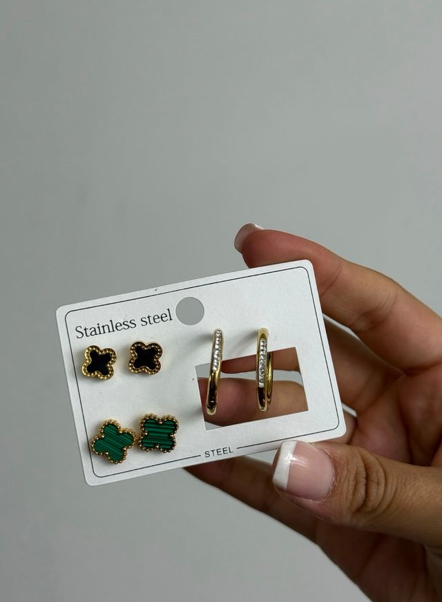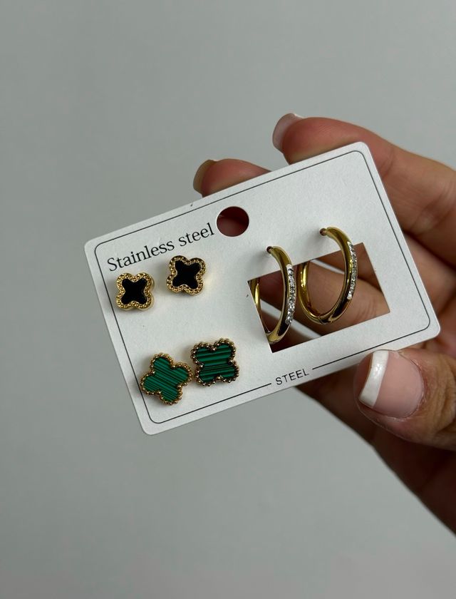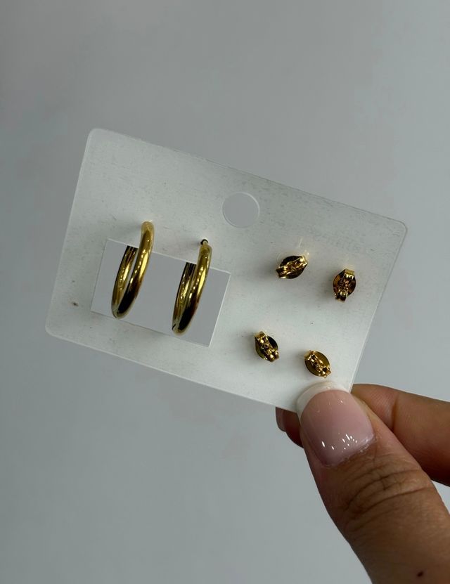 3 pares de caravanas con color dorado