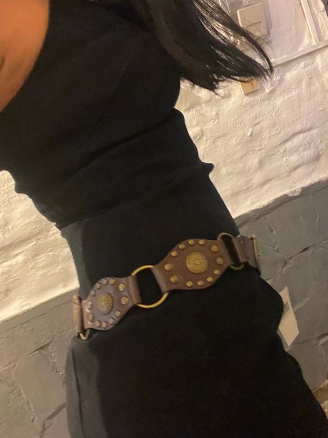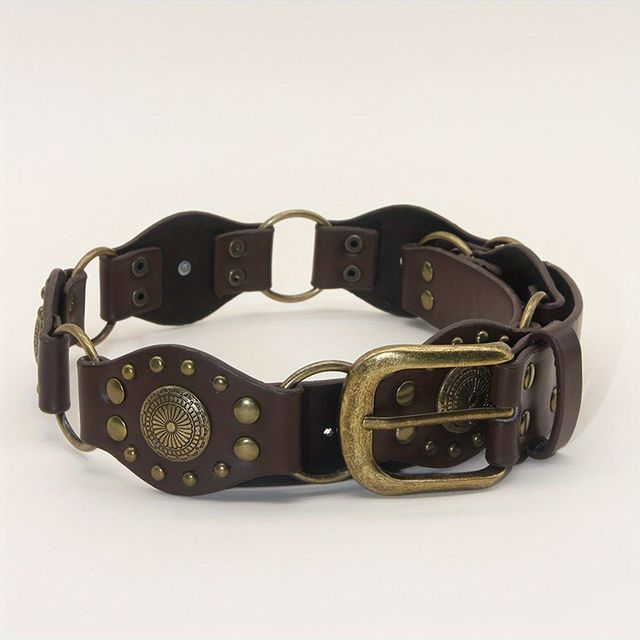 Cinto marrón con tachas con óvalo